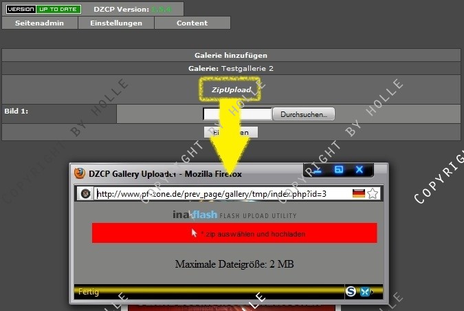 Darum habe ich diesen kleinen aber feinen Mod für das DZCP geschrieben, welcher euch erlaubt, eine zip-Datei mit Bilddateien auszuwählen & hochzuladen.